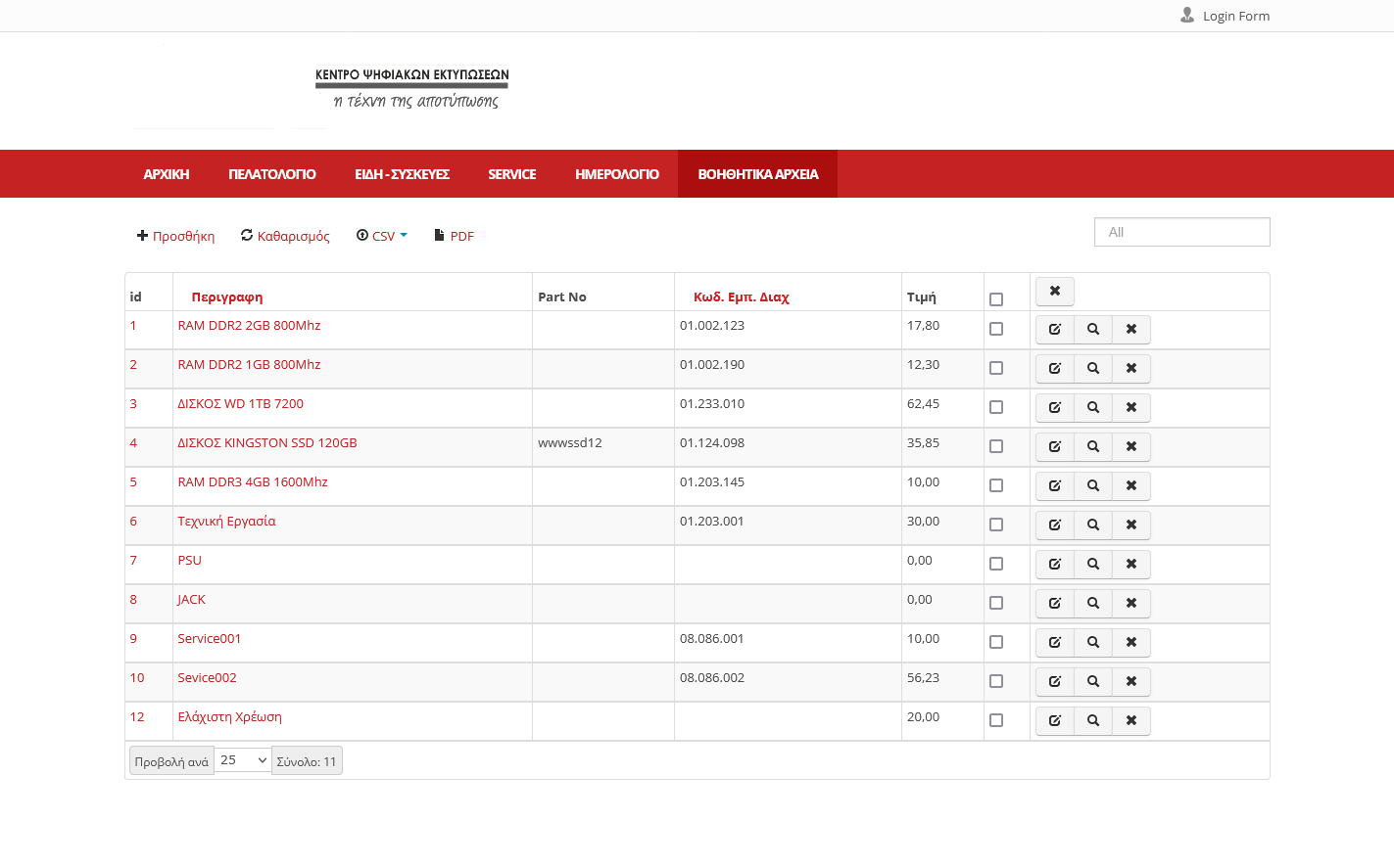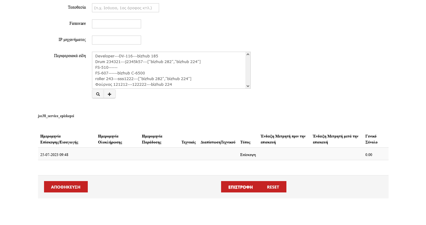 Καταχώρηση Φωτοτυπικών – Eκτυπωτών - Μηχανών Γραφείου με τα απαραίτητα στοιχεία (S/N, model, part number κτλ) και αντιστοίχιση στον πελάτη