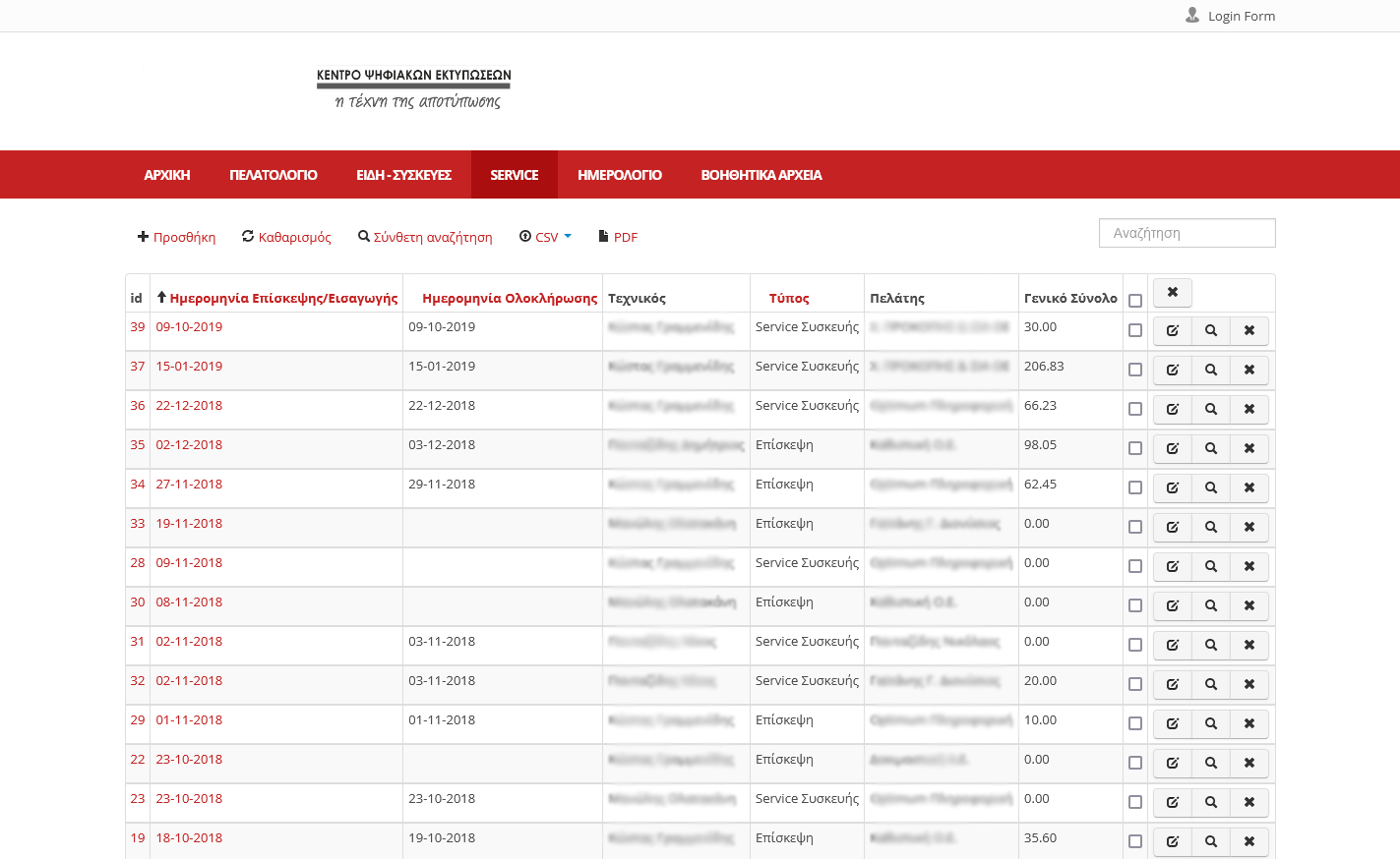 Πελατολόγιο με καταχώρηση στοιχείων και αντιστοίχιση με τις συσκευές τους